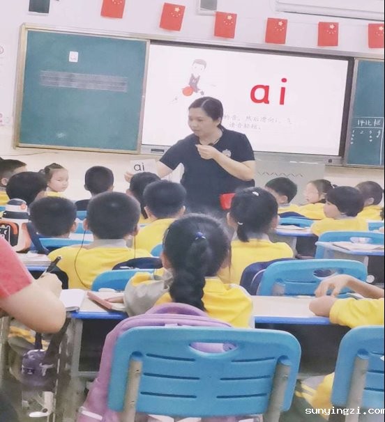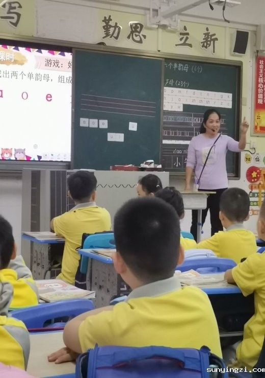 黎老师教态大方,语言平和,让人如沐春风,孩子们跟着黎老师徜徉在拼音教学的海洋里。
