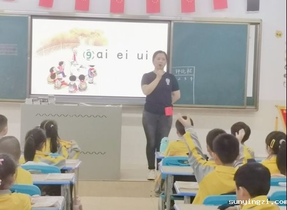 第二节课是由一(8)班的赵一娇老师给我们展示,她上课的内容是拼音教学第9课《ai ei ui》。